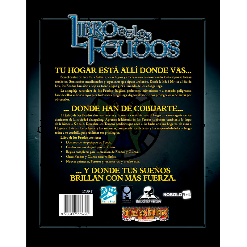 El Libro de los Feudos abre sus puertas y te invita a sentarte ante el fuego para sumergirte en los cimientos de la sociedad changeling. Aprende la historia de los Feudos conforme cambian a lo largo de la historia Kithain. Descubre los Tesoros perdidos que unen a las hadas con sus hogares, de alma a Hoguera. Estudia los peligros y las amenazas, comprende los deberes y las responsabilidades y luego reúne a tu cuadrilla para reclamar tus privilegios.
