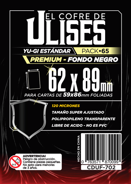 Folios para juego de cartas de 62×89 Yu Gi Oh standard Fondo negro (120 micrones) El Cofre de Ulises