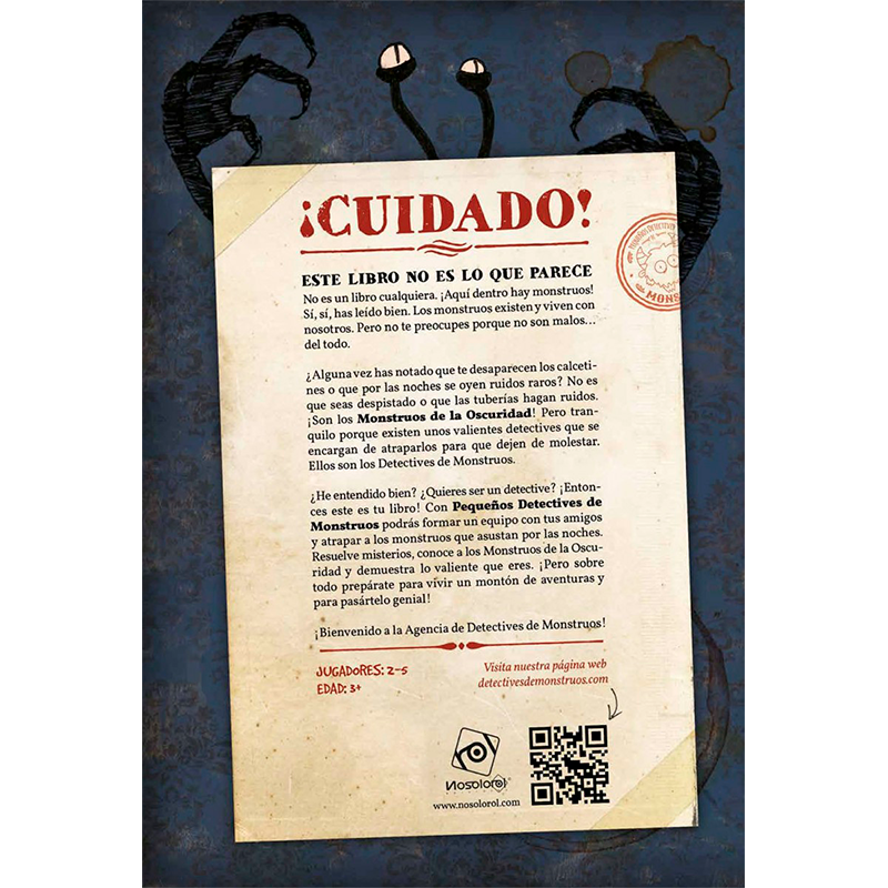 Pequeños Detectives de Monstruos es un libro básico con todo lo necesario para empezar a jugar con niños de tres años en adelante. El libro está fantásticamente ilustrado por Patricia de Blas y Álvaro Corcín, pensado para facilitar su lectura.