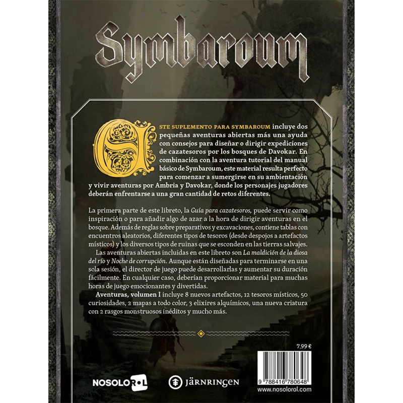 Este suplemento para Symbaroum incluye dos pequeñas aventuras abiertas más una ayuda con consejos para diseñar o dirigir expediciones de cazatesoros por los bosques de Davokar. En combinación con la aventura tutorial del manual básico de Symbaroum, este material resulta perfecto para comenzar a sumergirse en su ambientación y vivir aventuras por Ambria y Davokar, donde los personajes jugadores deberán enfrentarse a una gran cantidad de retos diferentes.