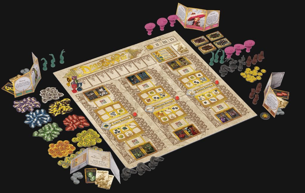 Dogs of War is not a game of pure military power, but rather a game in which deception and betrayal often lead the way to a decisive victory. The goal for the Dogs of War is to earn the most power by the end of the game. Thanks to thoughtful game design and development, there are many ways to achieve this, like defeating other captains in battle, getting rewards from the Houses you help, amassing gold and troops, and most importantly, gaining influence with the most successful Houses.
