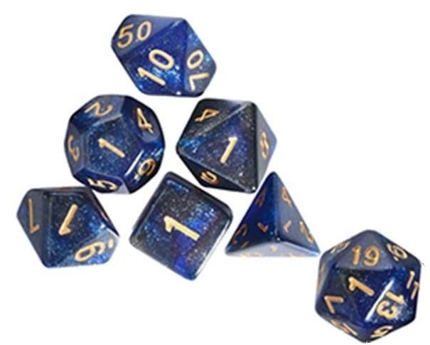 Set de 7 dados estrella poliédricos (Negro/Azul)